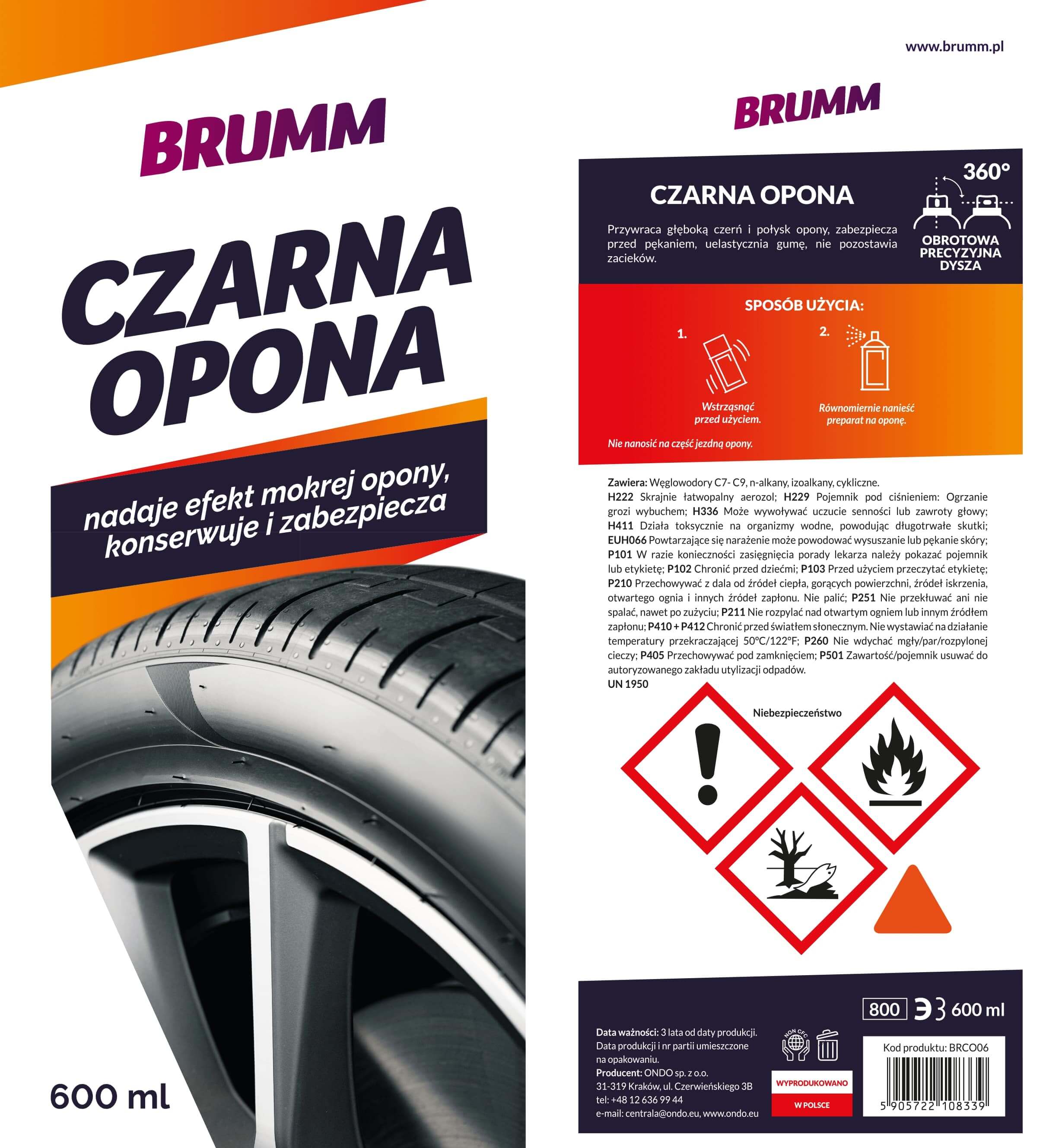 CZERNIDŁO DO OPON BRUMM NABŁYSZCZA PIELĘGNUJE KONSERWUJE SPRAY 600 ml