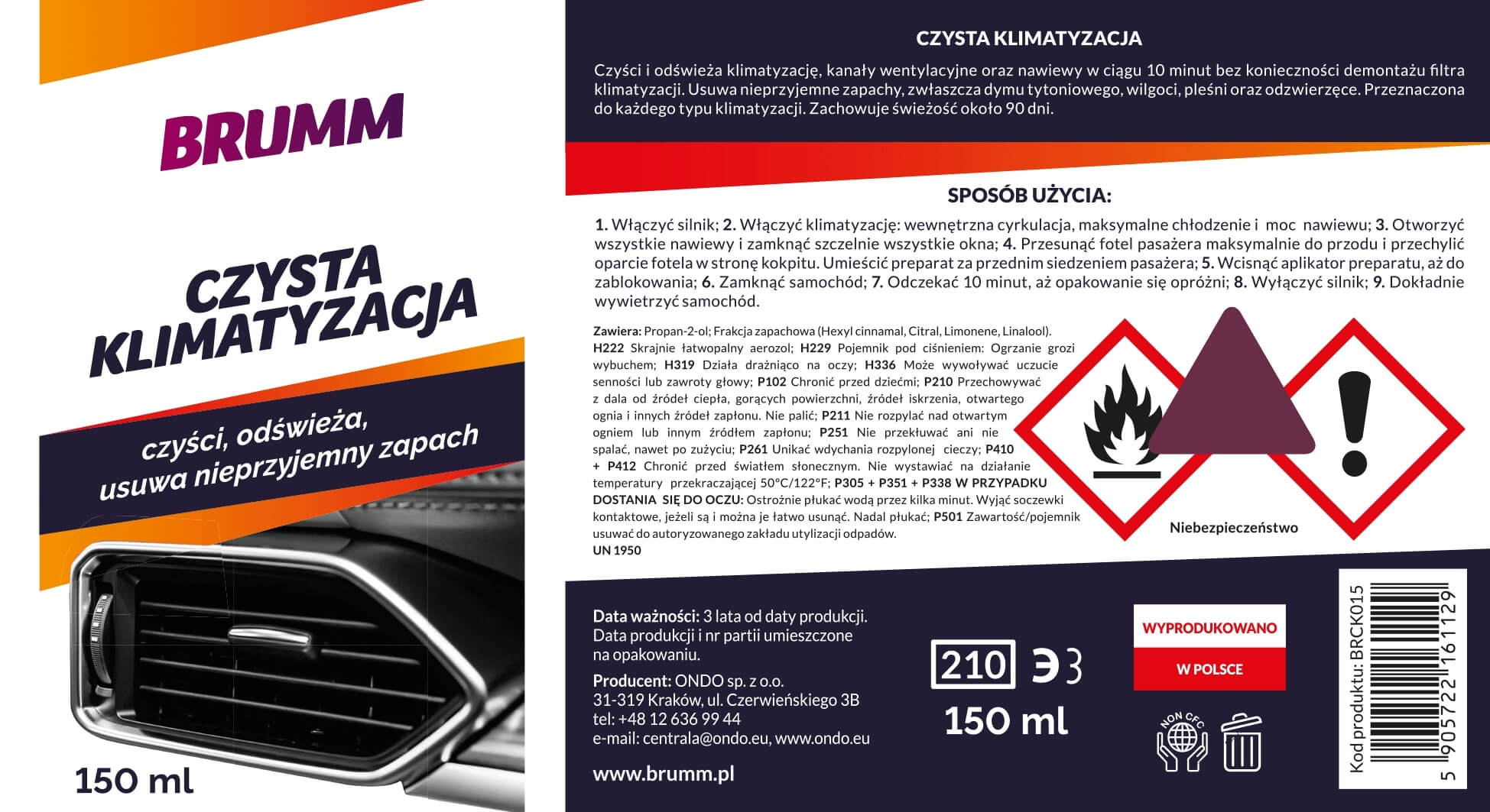 BRUMM Granat do Klimatyzacji pozwala Ci w zaledwie 10 minut skutecznie oczyścić i odświeżyć cały układ wentylacji. Bez wizyty w serwisie, bez narzędzi i bez rozbierania auta. Jedna aplikacja wystarczy, aby Twoje wnętrze znów pachniało czysto i świeżo, a każda podróż była po prostu przyjemna.