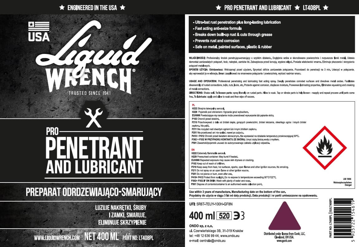 LIQUID WRENCH PRO PENETRANT to profesjonalny preparat, dzięki któremu błyskawicznie odblokujesz zardzewiałe połączenia, ułatwisz demontaż i zabezpieczysz metal przed dalszą korozją. W kilka chwil oszczędzasz czas, nerwy i siłę, a praca w warsztacie, garażu czy w domu staje się szybka i komfortowa.
