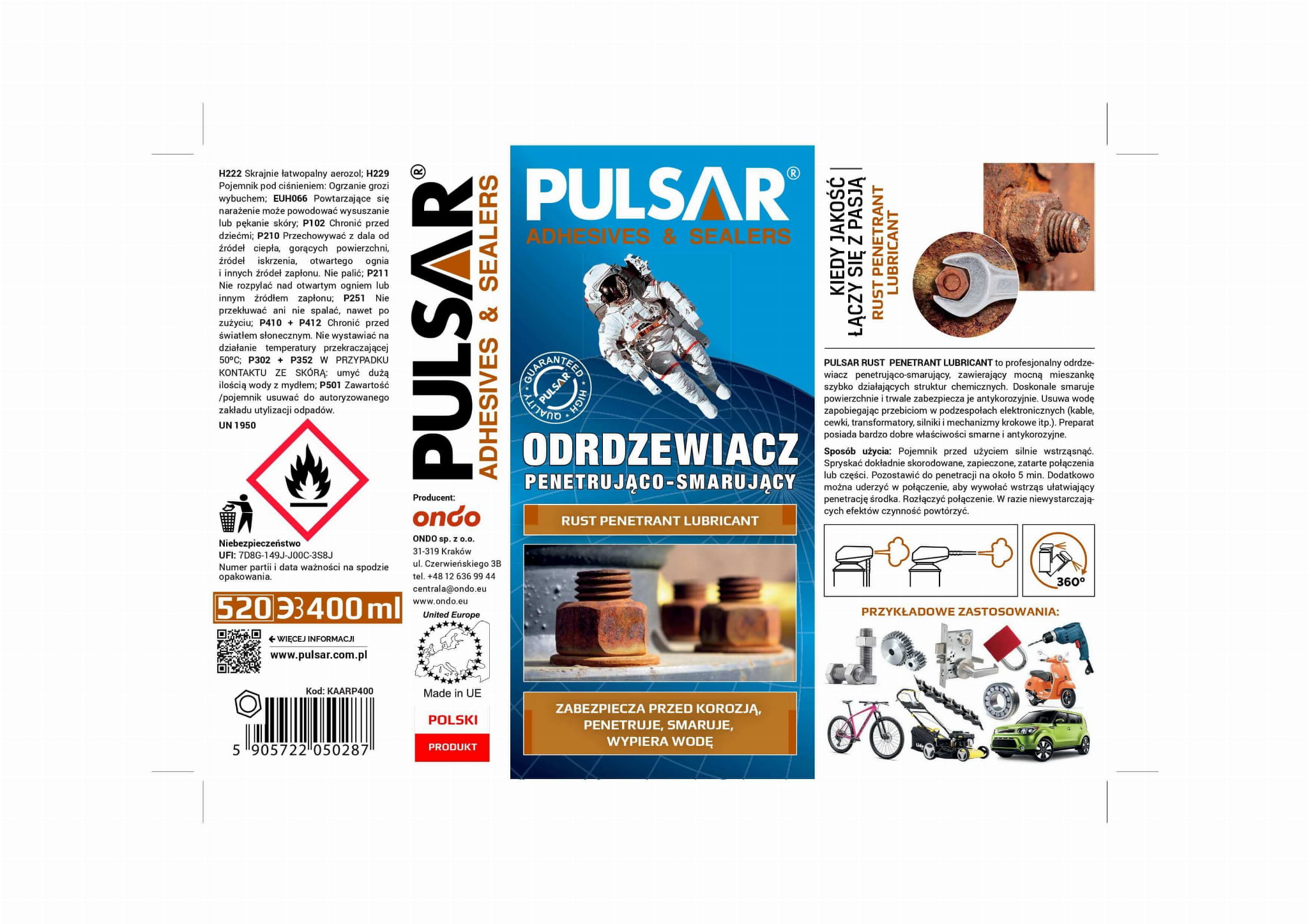 ODRDZEWIACZ WIELOFUNKCYJNY DO ŚRUB RDZY PULSAR PENETRANT W SPRAYU 400 ml