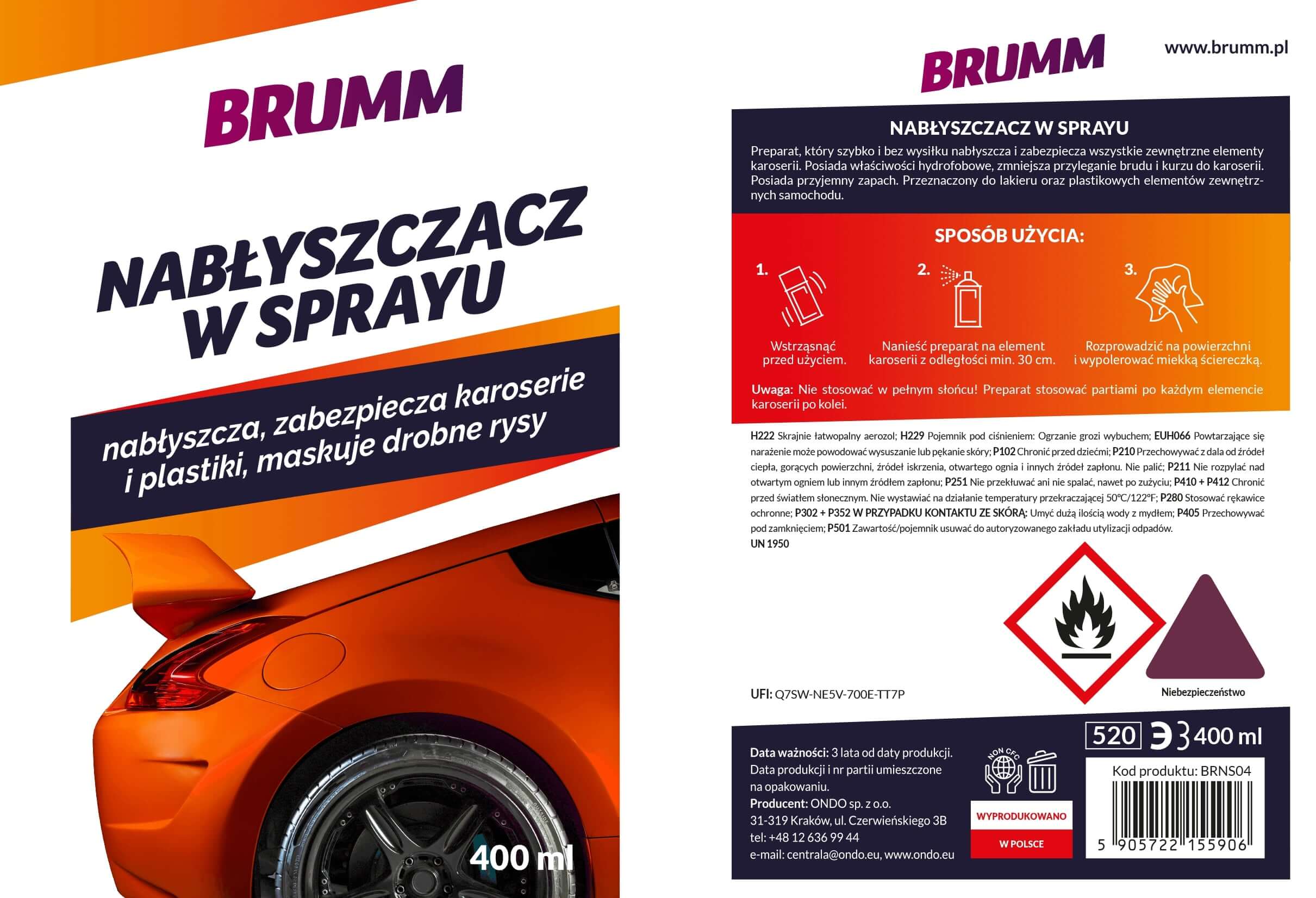 QUICK DETAILER BRUMM NABŁYSZCZA MASKUJE RYSY ZABEZPIECZA KAROSERIĘ 400 ml