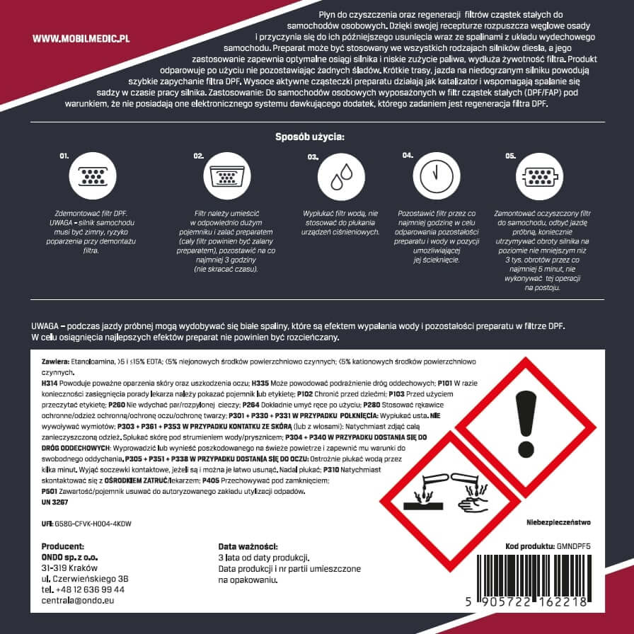 ŚRODEK DO CZYSZCZENIA FILTRÓW DPF FAP MOBIL MEDIC SKUTECZNIE REGENERUJE 5L