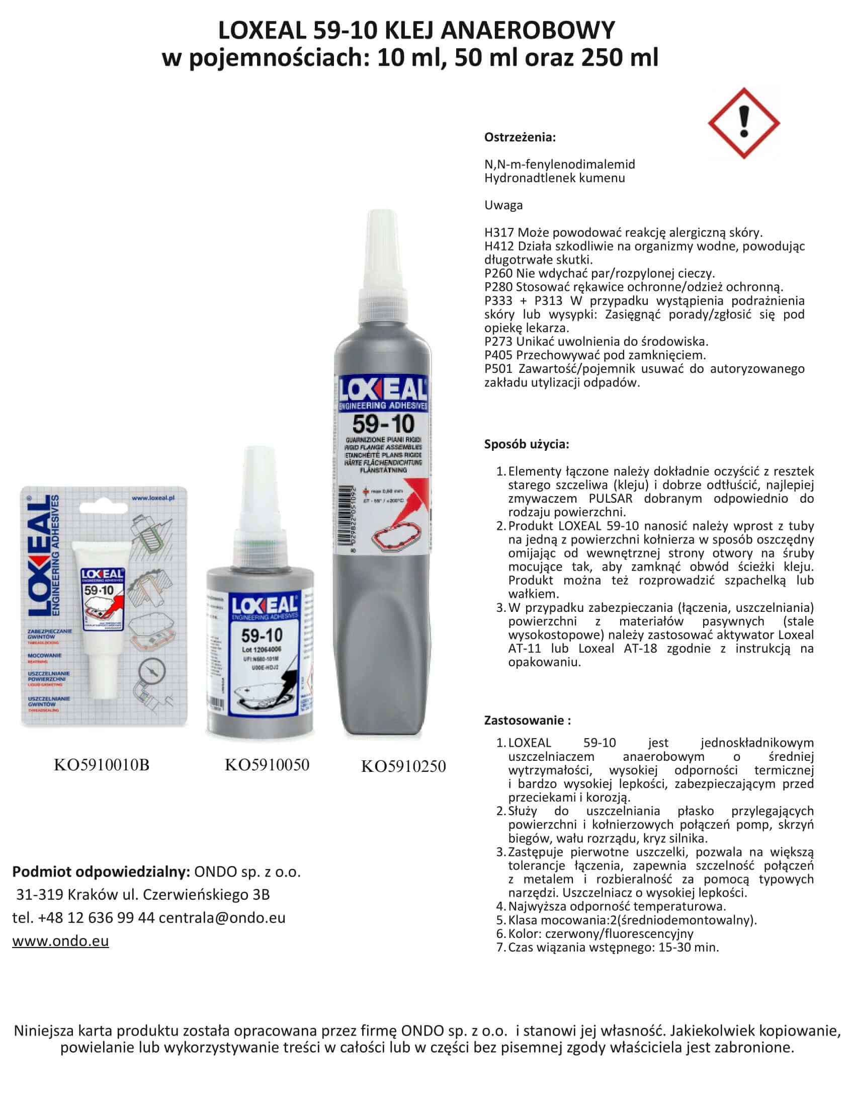 USZCZELNIACZ ZŁĄCZY KOŁNIERZOWYCH LOXEAL 59-10 +200°C WYSOKA LEPKOŚĆ 75 ml