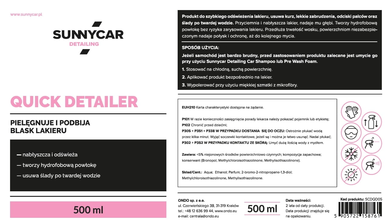 - Detailing Quick Detailer 500 ml - szybko nabłyszczasz lakier i usuwasz lekkie zabrudzenia.