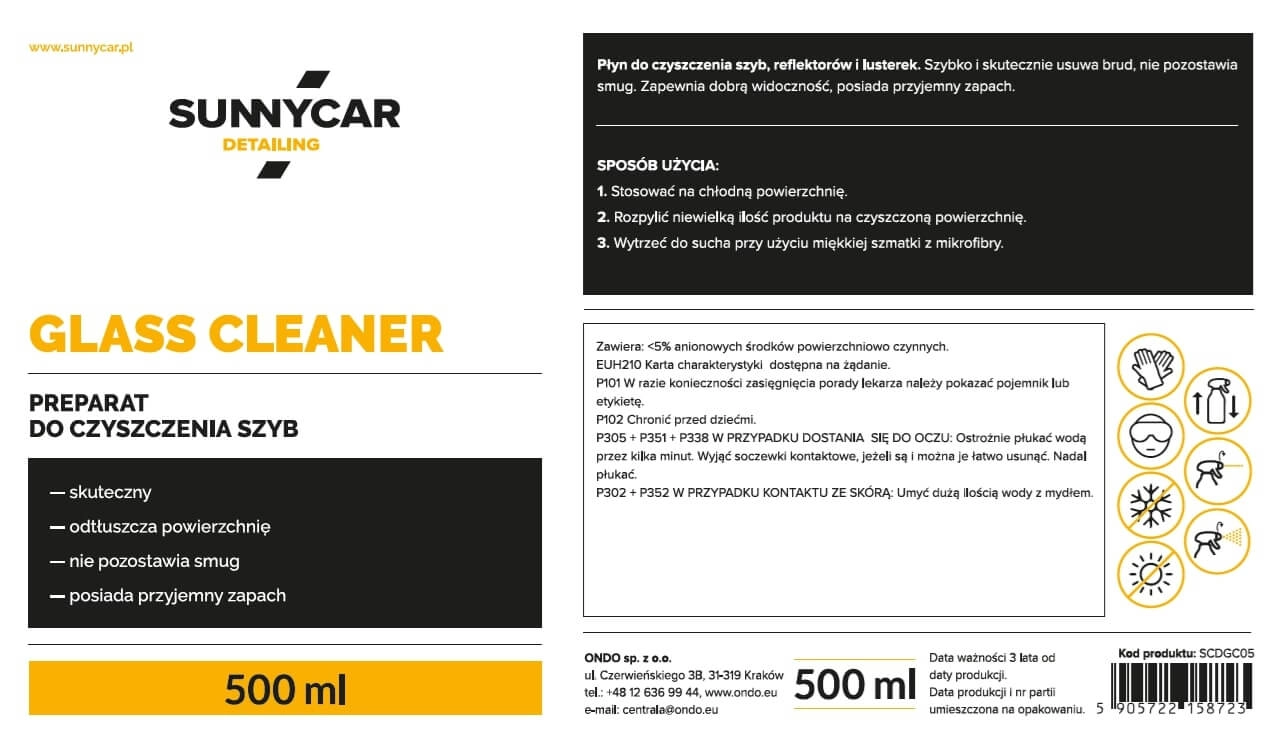 - Detailing Glass Cleaner 500 ml - szybko usuniesz brud, tłuszcz i osady, zostawiając perfekcyjną przejrzystość.