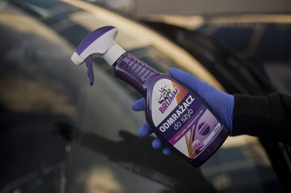 - Odmrażacz - rozpyl preparat na szybę, odczekaj 1-2 minuty i usuń roztopiony lód.