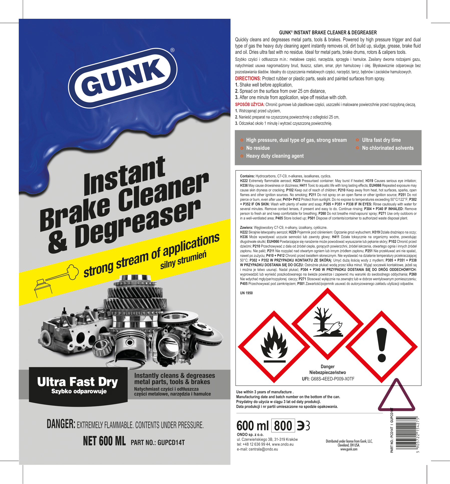 ZMYWACZ DO TARCZ HAMULCOWYCH HAMULCÓW GUNK 600 ml BARDZO SILNY STRUMIEŃ